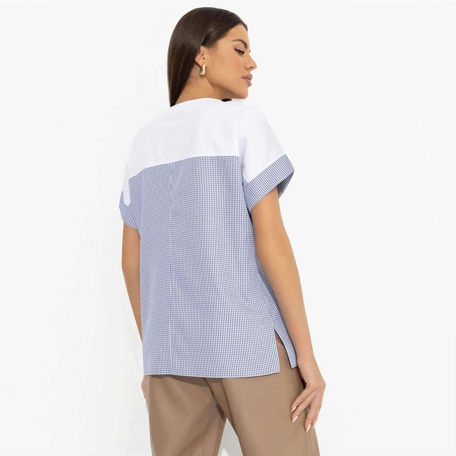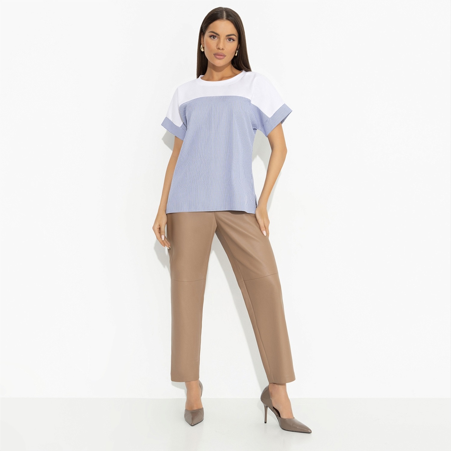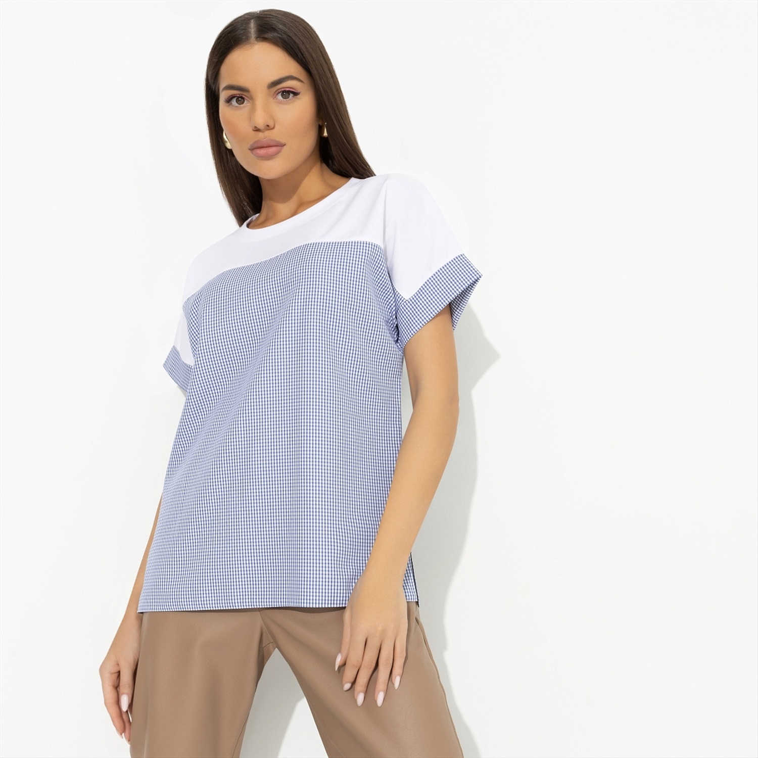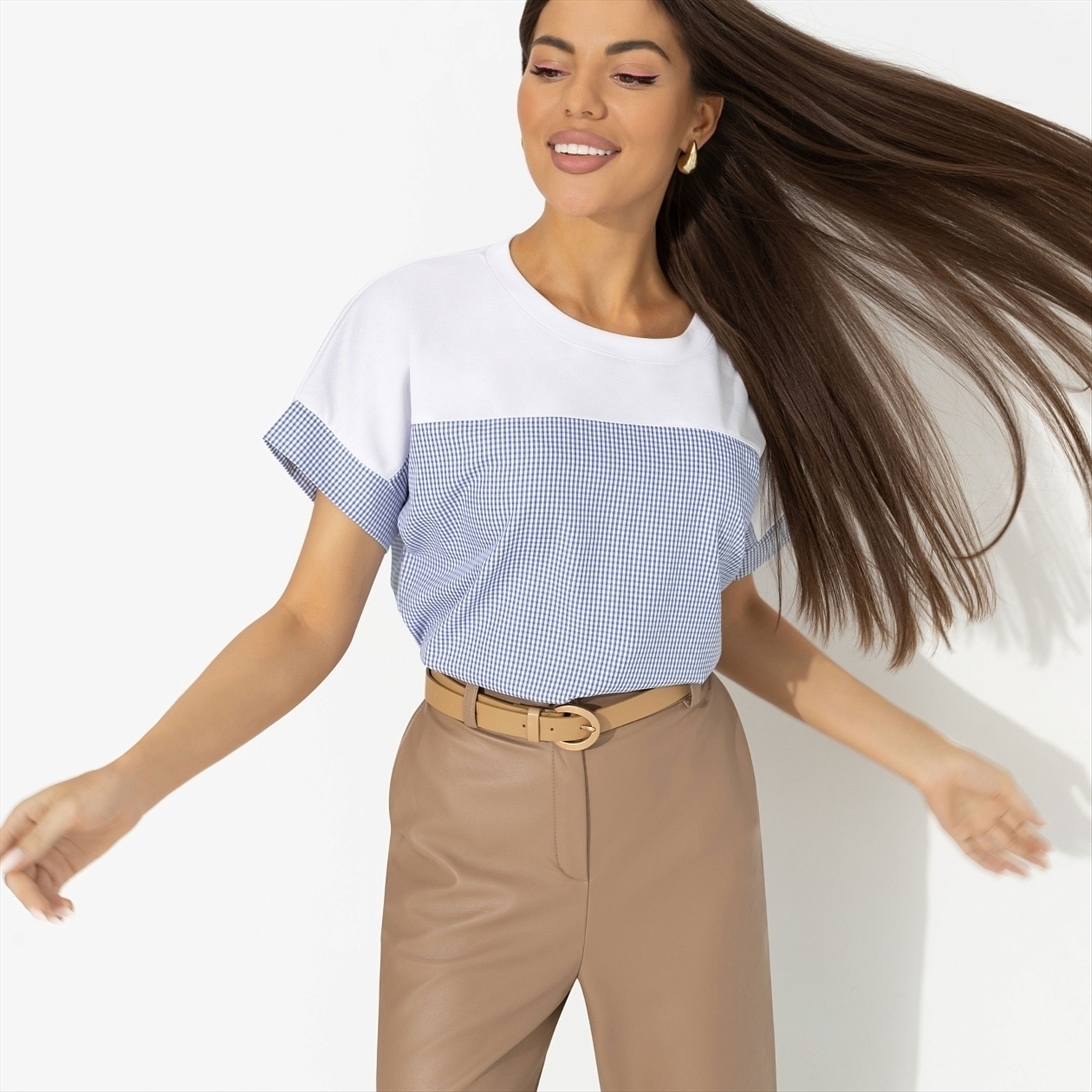 Состав: Трикотаж «милано» (65% п/э, 30% вискоза, 5% стрейч) Плотность ткани: Средняя Тип ткани: Трикотаж Вид застежки: Нет Дополнительный цвет ткани: Белый Карманы: Нет Основной цвет ткани: Синий Отрезная талия: Нет Подклад: Нет Резинка по талии: Нет Рисунок/раппорт: Нет, все изделия идентичны Сезон: Круглогодичный Силуэт: Свободный Стиль: Повседневный Длина изделия: