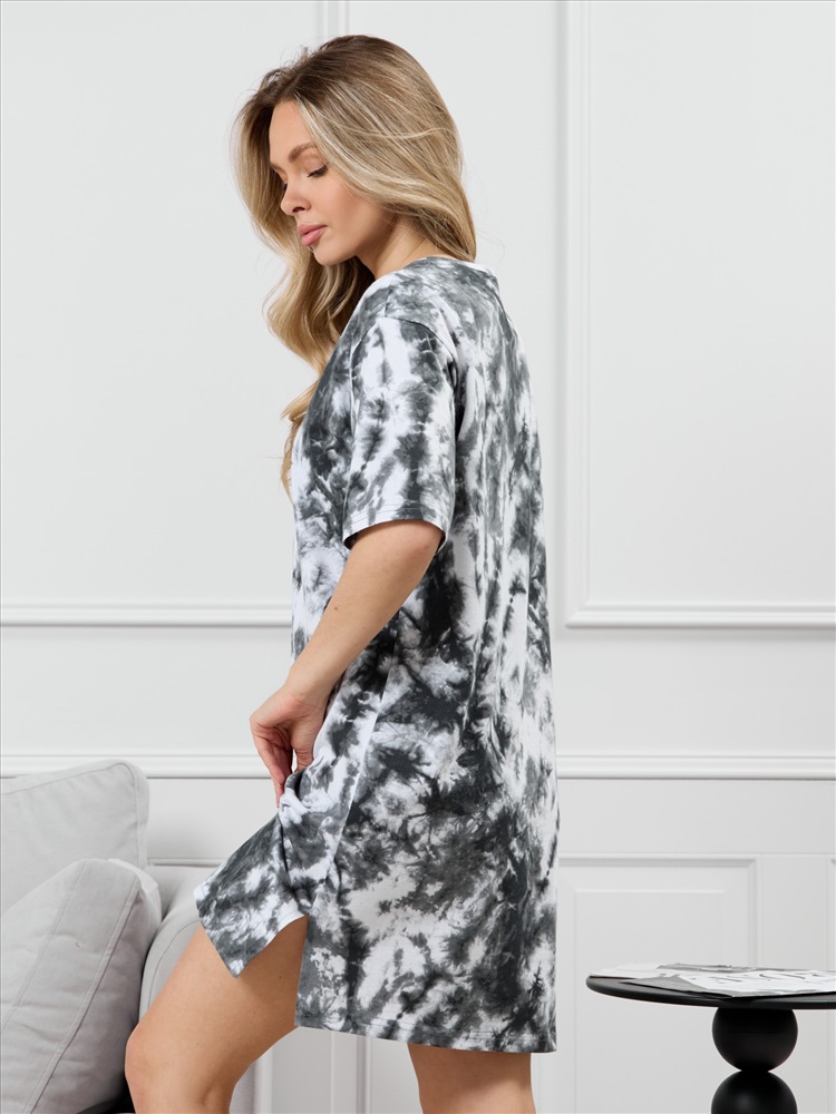 Состав: 100% хлопок Ткань: Кулирка (пенье) Туника молодежная из трикотажного полотна «кулирка» с набивным рисунком, прямого силуэта, с короткими втачными рукавами, горловиной овальной формы, обработанной притачной бейкой из основного материала, с разрезами в боковых швах. По центру полочки рядом с горловиной настрочен декоративный элемент-нашивка. Комментарии к товару
