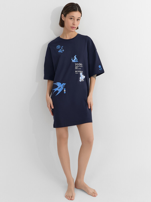 Если вы ищете женскую ночную сорочку, которая сочетает в себе уют и стиль, эта модель – отличный выбор. В коллекции представлены нежные базовые оттенки, подходящие под любой образ. Домашнее платье с милым принтом понравится всем, кто ценит комфорт и душевные детали.