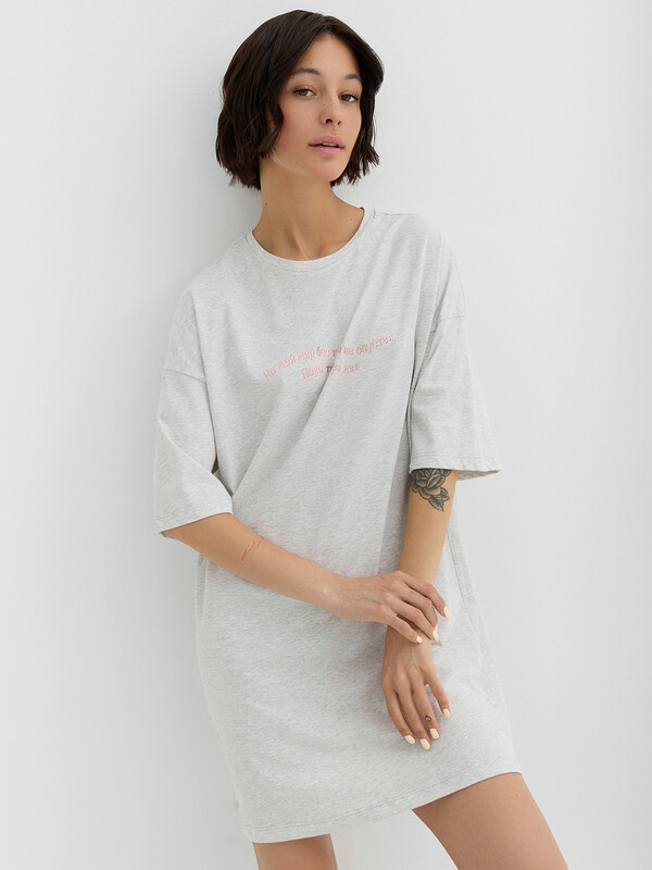 Производитель: Mark Formelle Очаровательная женская туника станет идеальным дополнением ваших домашних образов. Она прекрасно сидит по фигуре и не стесняет движений, обеспечивая максимальный комфорт. Короткие рукава со спущенной линией плеча и круглая горловина придают модели легкость. Изделие выполнено из мягкого и дышащего материала, который не сковывает движений и обеспечивает ощущение свободы. Деликатные швы абсолютно не чувствуются на коже, что добавляет дополнительное удобство. Эта туника идеально подходит для занятий домашними делами, отдыха и сна. В линейке представлены интересные базовые цвета, а широкий размерный ряд позволяет каждой женщине найти подходящий вариант. Рекомендуем!