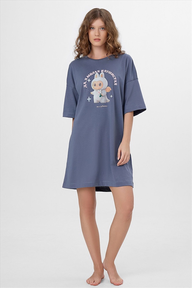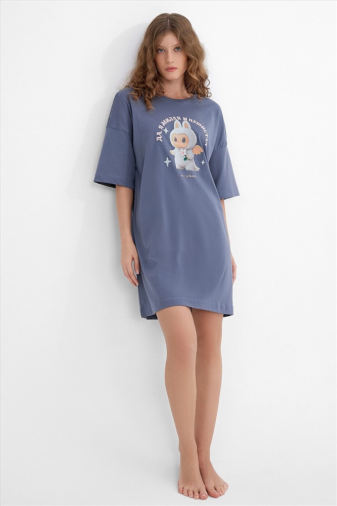 ID товара: 1232508 Состав: 100% хлопок Сезон: Весна/Лето Рукав: короткие Вид застежки: Без застежки Вырез горловины: Круглый Тип карманов: Без карманов Уход: Деликатная стирка при 30 градусах Воротник: Нет Фактура материала: Кулирное полотно Страна бренда: Беларусь Страна производства: Китай Женская туника черного цвета с принтом станет любимым предметом гардероба для дома. Она выполнена из мягкого и дышащего трикотажа на основе хлопка, который обеспечивает комфорт и приятные тактильные ощущения. Свободный крой не сковывает движений, позволяя заниматься повседневными делами или отдыхать. Рукава со спущенной линией плеча и круглый вырез горловины создают расслабленный силуэт. Модель идеально подходит для сна, утреннего кофе или неспешного отдыха. Комментарии к товару