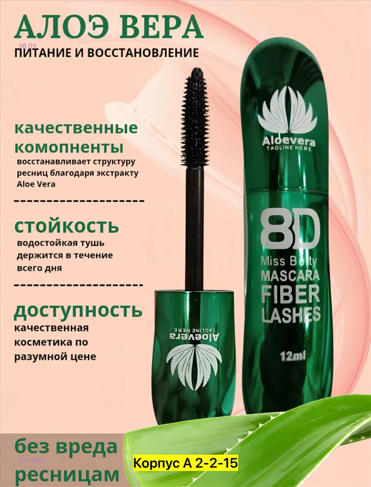 Тушь, Открой секрет выразительного взгляда с тушьюAloevera 8D Fiber Lashes!Инновационная формула с экстрактом алоэ вера питает и восстанавливает ресницы по всей длине, придавая им естественный блеск и эластичность.