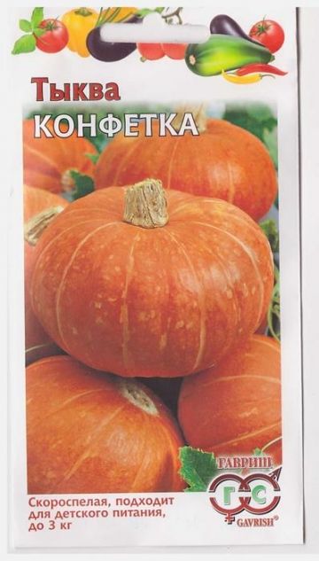 Скороспелый (85-95 дней от всходов до созревания) сорт. Плетистое растение одновременно формирует до 6 хорошо сегментированных плодов округлой формы, массой 1,5-3,0 кг. Окраска коры при созревании ярко-красная. Мякоть красно-оранжевая, хрустящая, сладкая, сочная. Вкус отличный. Обладает качествами пригодными для переработки и потребления в свежем виде. Используется при изготовлении пюре для детского питания. Выращивается как рассадным способом, так и прямым посевом в грунт. Глубина заделки 4-10 см, в зависимости от почвы. Хорошо отзывается на внесение органических удобрений. Собирают тыкву обязательно с плодоножками. Главное условие для успешного хранения – сухой воздух, проветриваемое помещение. Фасовка 0,2г Комментарии к товару