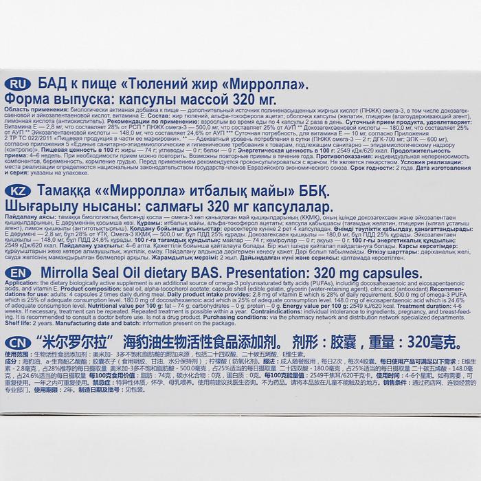 Габариты: 12 x 8,5 x 2 Страна: Россия В боксе: 100 шт Состав: См. на упаковке Материалы: см. на упаковке Фасовка: по 1 шт Индивидуальная упаковка: Картонная коробка / упаковка Сертификат: ЕАС Для кого: Унисекс, Для женщины, Для мужчины В упаковке, шт.: 100 Возраст: Взрослый Возраст: Для взрослых Назначение: Для сердца и сосудов, Для иммунной системы Группа витаминов: Омега 3 Форма выпуска: Капсулы Показания: Укрепление иммунитета Действие: Общеукрепляющее Фиксированная цена: Да Дополнительный источник полиненасыщенных жирных кислот (ПНЖК) омега-3, в том числе докозагексаеновой и эйкозапентаеновой кислот, витамина Е. Форма выпуска: капсулы массой 320 мг. Продолжительность приема: 4-6 недель. При необходимости прием можно повторить. Возможны повторные приемы в течение года. Пищевая ценность в 100 г: жиры – 74 г; углеводы – 0 г; белки – 0 г. Энергетическая ценность в 100 г: 2549 кДж/620 ккал. Противопоказания: индивидуальная непереносимость компонентов, беременность, кормление грудью. Перед применением рекомендуется проконсультироваться с врачом. Срок годности: 2 года. БАД. Не является лекарством. Состав: жир тюлений, альфа-токоферола ацетат; оболочка капсулы (желатин, глицерин (влагоудерживающий агент), лимонная кислота (антиокислитель). Способ применения: взрослым во время еды по 4 капсулы 2 раза в день. Комментарии к товару