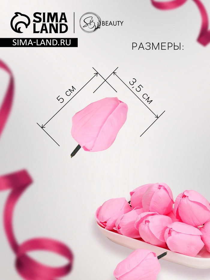 Мыльные цветы, тюльпаны, розовые, набор 50 шт.