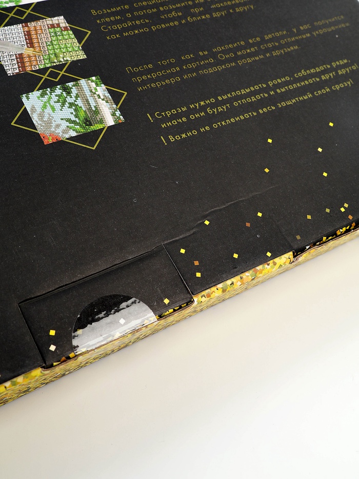 Габариты: 40 x 24 x 4 Страна: Китай В боксе: 13 набор Состав: Металл, пластик, текстиль, ПВА Материалы: металл, пластик, текстиль, ПВА Фасовка: по 1 набор Индивидуальная упаковка: Цветная картонная коробка Габариты товара: 40 см × 23,7 см × 3,5 см Сертификат: Не подлежит сертификации Причина уценки: нарушена упаковка Количество цветов: 36 Для кого: Унисекс Размер, см: 22 х 32 Ширина, см: 32 Высота, см: 22 Возраст: Для взрослых Тематика: Животный мир Тематика праздника: 8 Марта Ориентация изображения: Горизонтально Материал для аппликации: Стразы Тип выкладки: С полным заполнением Тип: Алмазная мозаика Форма страз: Квадратные Тип основы: Холст (без подрамника) Фиксированная цена: Да Этот набор позволит создать настоящий шедевр своими руками! Разложите кристаллики с помощью специального карандаша по указанной схеме, заполните всё полотно. Тканевая основа с точечным клеевым покрытием будет надёжно удерживать стразы. На картине уже обозначены необходимые оттенки. Отдельно вас порадует то, что все цвета схемы расположены рядом с рабочей областью холста. А это значит, что схема всегда будет под рукой! Для того, чтобы натянуть готовую картину на подрамник или вставить в раму, у холста предусмотрена дополнительная тканевая область. Алмазная вышивка с полным заполнением - это отличный способ провести вечер в творческой атмосфере. Готовое изделие украсит интерьер или станет оригинальным подарком. Комплектация