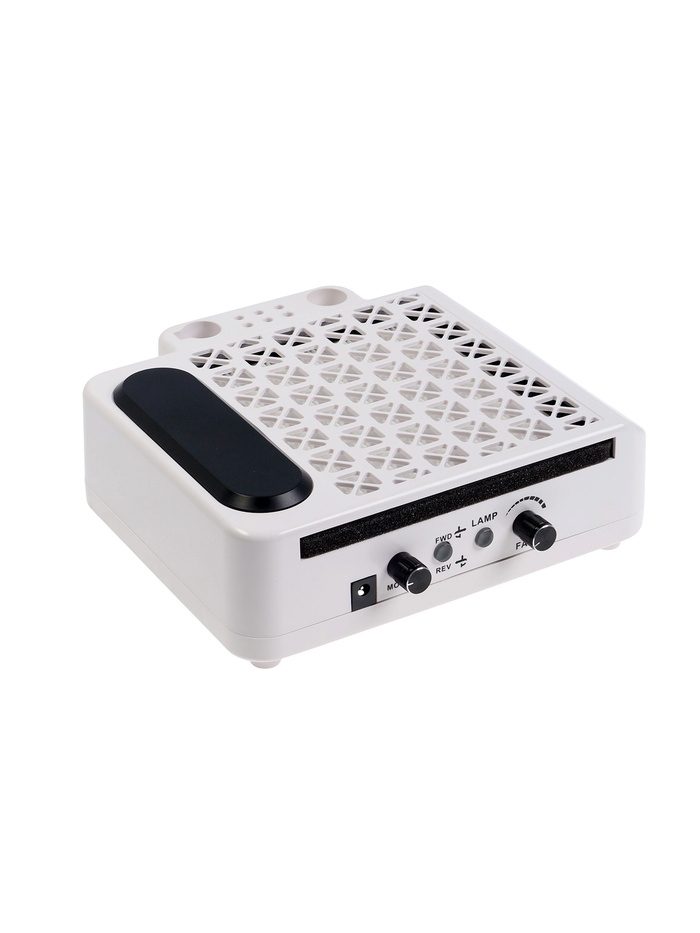 Понятная панель управления оборудована всем необходимым. Вы можете регулировать работу всех элементов устройства: включать лампу и пылесос, плавно регулировать скорость вращения фрез и мощность всасывания пылесоса, а также выбирать направление вращения фрез. Многообразие и простота - это отличительные особенности аппарата для маникюра.