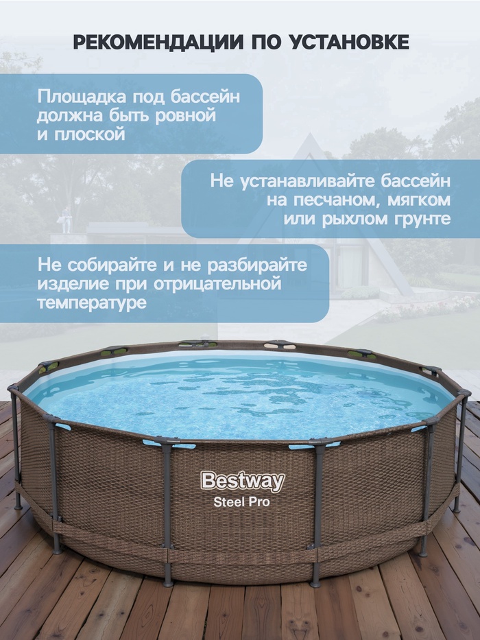 Бассейн необходимо установить на ровную поверхность, удалив предметы, которые могут повредить дно.