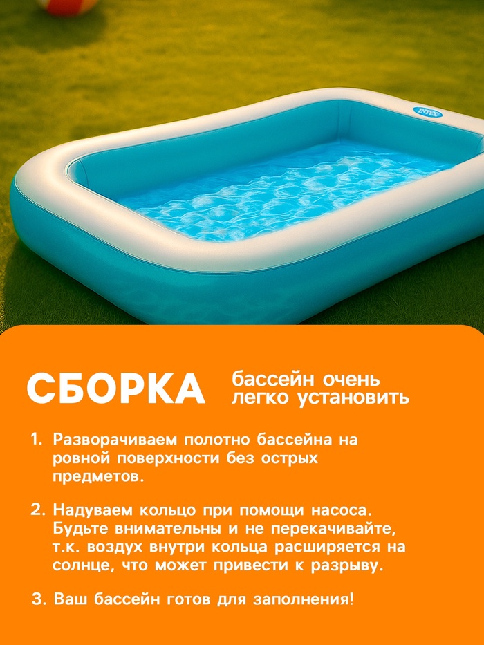 Внимание! Не устанавливайте детский бассейн на бетоне, асфальте или какой-либо другой жёсткой поверхности. Сливайте воду из бассейна, когда не пользуетесь им. Комментарии к товару