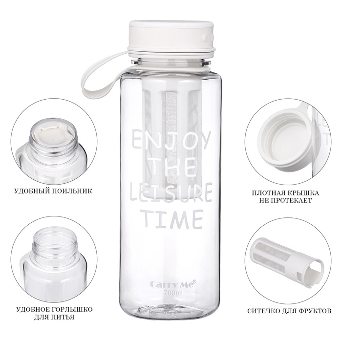 Она изготовлена из качественного и безопасного пищевого пластика. Бутылка оснащена крышкой, которая обеспечивает герметичность и предотвращает протекание.