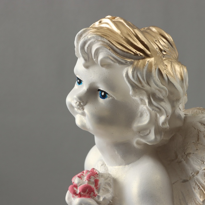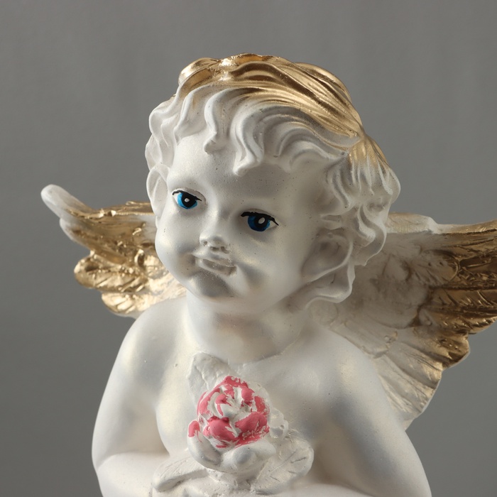 - Выразительный дизайн: Фигура ангела с мягкими чертами лица и детализированной формой передает ощущение спокойствия и благодати. Перламутровое покрытие создает тонкие переливы, а золотистые акценты подчеркивают благородство образа.