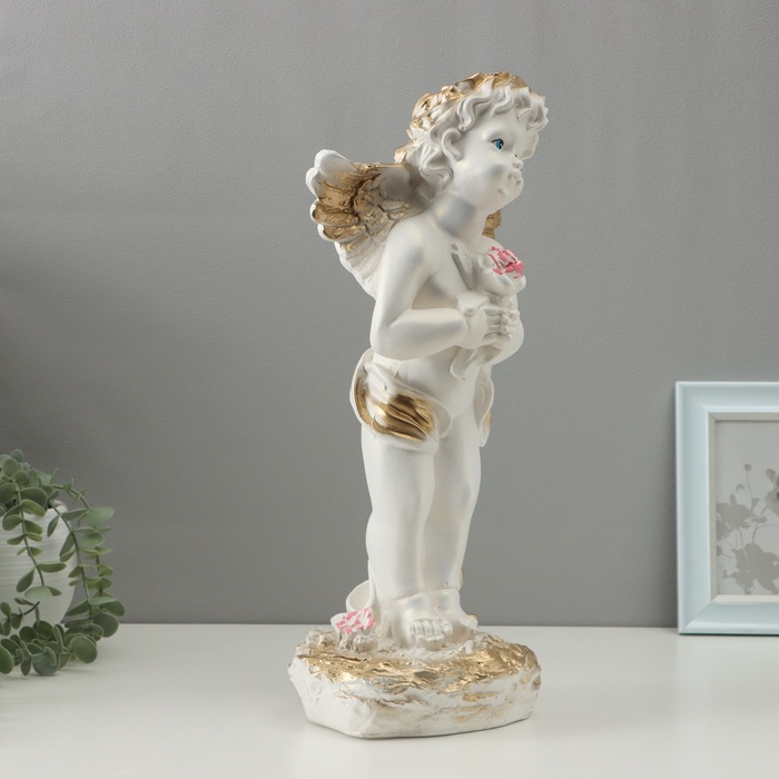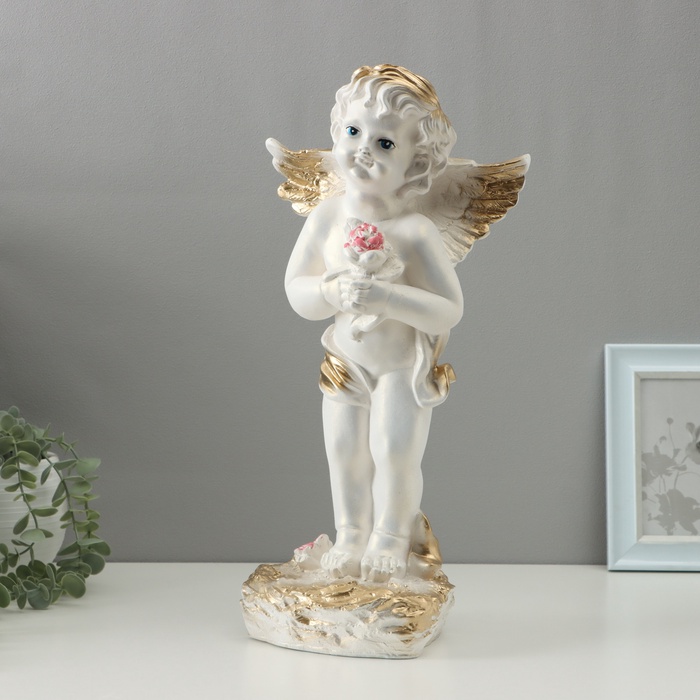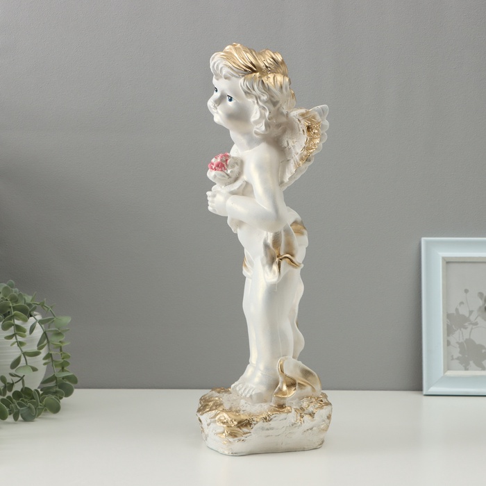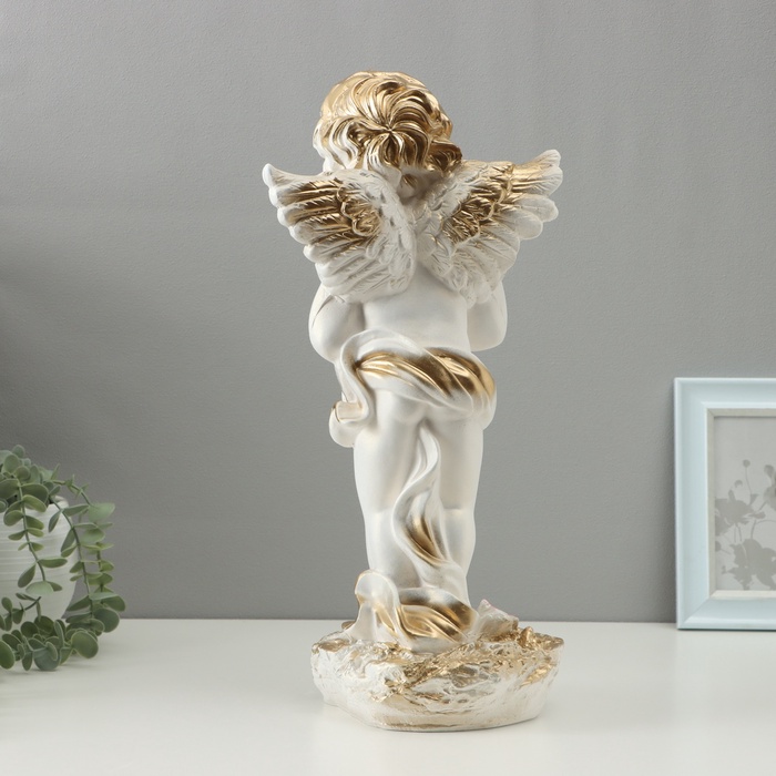 Символ чистоты и света для вашего дома! Большая фигура ангела из гипса с перламутровым покрытием — это изысканное декоративное изделие, создающее атмосферу уюта и праздника. Скульптура привлекает внимание изящными линиями и деликатным сочетанием белого и золотистого оттенков.
