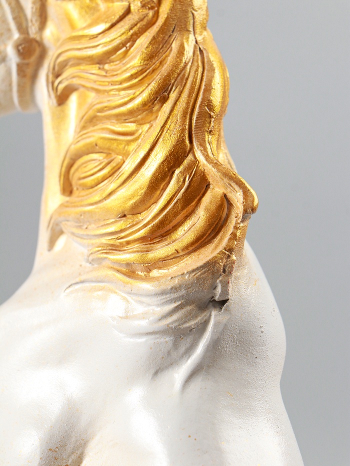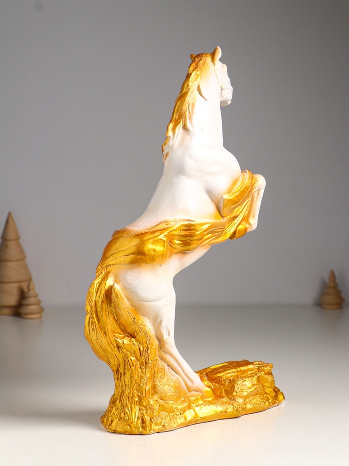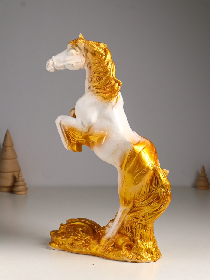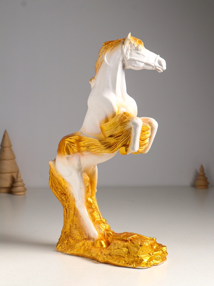 Габариты: 22 x 9 x 34 Страна: Россия В боксе: 12 шт Состав: Гипс Материалы: гипс Фасовка: по 1 шт Индивидуальная упаковка: пупырчатая пленка Сертификат: Не подлежит сертификации Причина уценки: скол; непрокрашенные участки Набор: Нет Цвет: Белый, Золотистый Высота, см: 34 Символ года: Символ года 2026 (Лошадь) Тематика праздника: Новый год, 23 Февраля, Военные праздники Материал: Гипс Одноцветный: Нет Эта гипсовая фигура белого коня с золотыми акцентами станет символом силы и триумфа в вашем интерьере. Она воплощает дух победы, делая её значимым подарком к Новому году, 23 Февраля или другим памятным датам. Статуэтка передаёт мощь и грацию, принося в дом энергию и успех. Ключевые детали