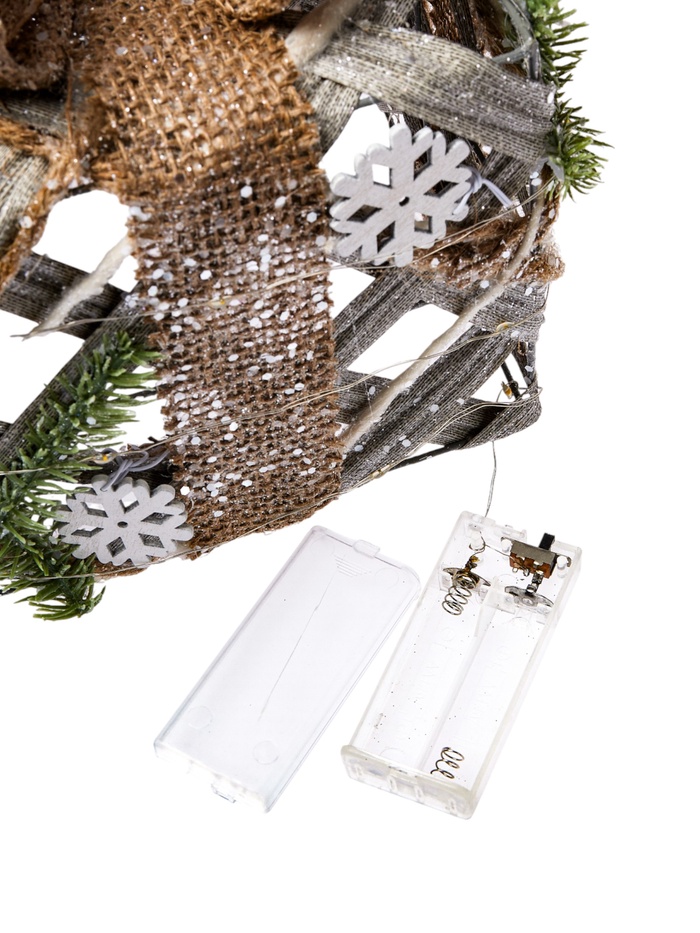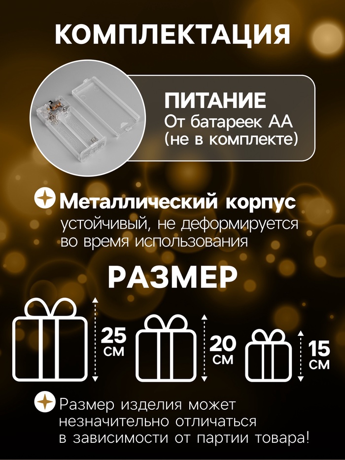 Производитель: Luazon Lighting Габариты: 28 x 26 x 26 Страна: Китай В боксе: 12 шт В наборе: 1 шт Состав: Бумага, металл, пластик, текстиль Материалы: бумага, металл, пластик, текстиль Фасовка: по 1 шт Индивидуальная упаковка: Пакет Габариты товара: 25 см × 25 см × 28 см Сертификат: ЕАС Причина уценки: нет одной детали Цвет свечения: Тёплый белый Режим работы: Постоянное свечение Гарантийный срок, мес.: 6 Количество светодиодов: 90 Тематика праздника: Новый год Материал: Текстиль, Металл Тип питания: От батареек Стиль: Датский Фиксированная цена: Да
