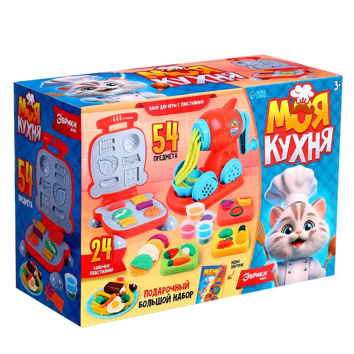 Габариты: 27 x 12 x 19 Страна: Китай В боксе: 24 набор Состав: Пластик Материалы: пластик Фасовка: по 1 набор Индивидуальная упаковка: Картонная коробка Габариты товара: 12 см × 19 см × 27 см Сертификат: ЕАС Причина уценки: помята коробка; нарушена упаковка Для кого: Унисекс Возраст: От 3 лет Тематика набора: Лепка Откройте детскую кулинарную студию из пластилина! Набор «Моя кухня» (54 предмета) — это целый мир кулинарного творчества для детей от 3 лет. Яркие цвета и разнообразные инструменты превращают лепку в увлекательную игру.