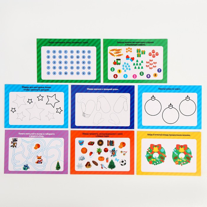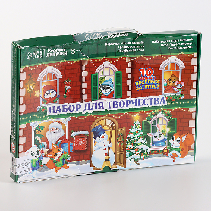 Набор для творчества надолго займёт и увлечёт ребёнка. Он создан специально для маленьких непосед. Внутри вы найдёте множество разнообразных заданий на новогоднюю тематику, которые помогут создать праздничное настроение.