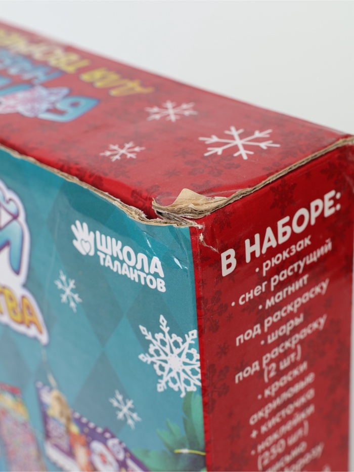 Габариты: 22,5 x 6 x 26 Страна: Китай В боксе: 24 набор Состав: Искусственная кожа, картон, металл, пластик, полиэстер, краска, кисть, полимер Материалы: искусственная кожа, картон, металл, пластик, полиэстер, краска, кисть, полимер Фасовка: по 1 набор Индивидуальная упаковка: Цветная картонная коробка Габариты товара: 25,7 см × 22,3 см × 5,6 см Сертификат: ЕАС Причина уценки: нет одной детали Набор: Да Для кого: Унисекс Возраст: От 3 лет В наборе, шт.: 25 Вид упаковки: Коробка Символ года: Нет Тематика праздника: Новый год Адресат: Без адресата Материал: Бумага Материал для аппликации: Наклейки, Стикеры, Стразы Для создания: Набор для декорирования Составляющие набора: Товары для творчества Темпер. ограничение НЕ НИЖЕ ℃: -10 Возраст: Для детей Фиксированная цена: Да Чудесный подарок для творческих малышей! Внутри новогоднего рюкзачка находится целых 25 предметов для творчества. С этим волшебным набором вы сможете вырастить снег, написать письмо Деду Морозу, сделать ёлочные шары и яркие аппликации, и это ещё не всё! Подарите ребёнку творчество! Комплектация