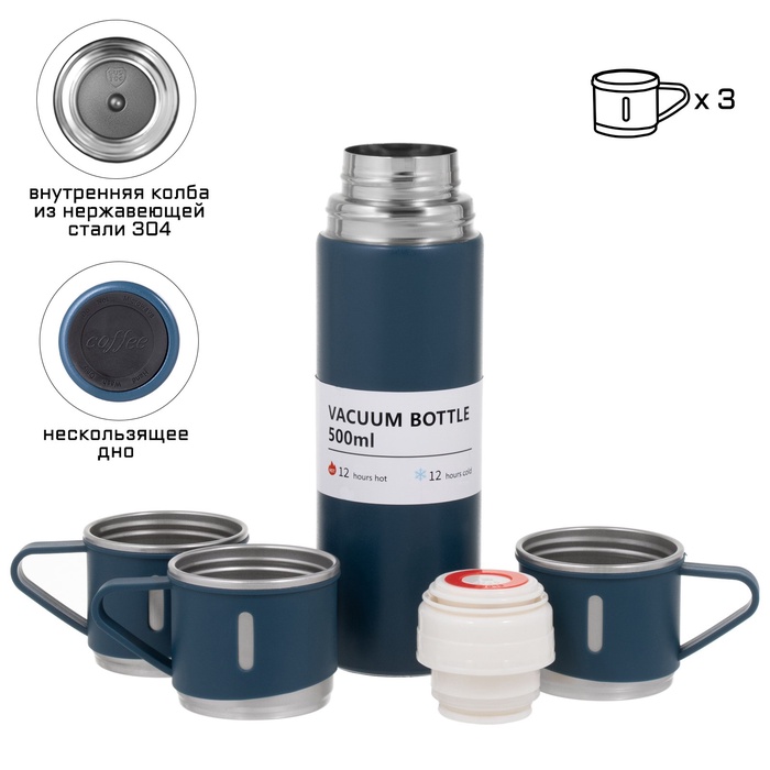 УЦЕНКА Набор «Мастер К»: термос 500 мл и 3 кружки 160 мл, сохраняет тепло 12 ч, синий
