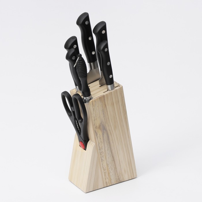Габариты: 13,5 x 8 x 33,5 Страна: Китай В боксе: 20 набор Состав: Дерево, нержавеющая сталь Материалы: дерево, нержавеющая сталь Фасовка: по 1 набор Индивидуальная упаковка: Картонная коробка Габариты товара: 42 см × 55,5 см × 35 см Сертификат: РСТ Причина уценки: Внешний дефект товара Цвет: Чёрный В наборе, шт.: 7 Материал ручки: Пластик Рисунок: Нет Тип покрытия: Без покрытия Материал лезвия: Нержавеющая сталь Особенности: На подставке Фиксированная цена: Да ДополнительноПричина уценки: заусенцы и шороховатости на дереве. Комментарии к товару