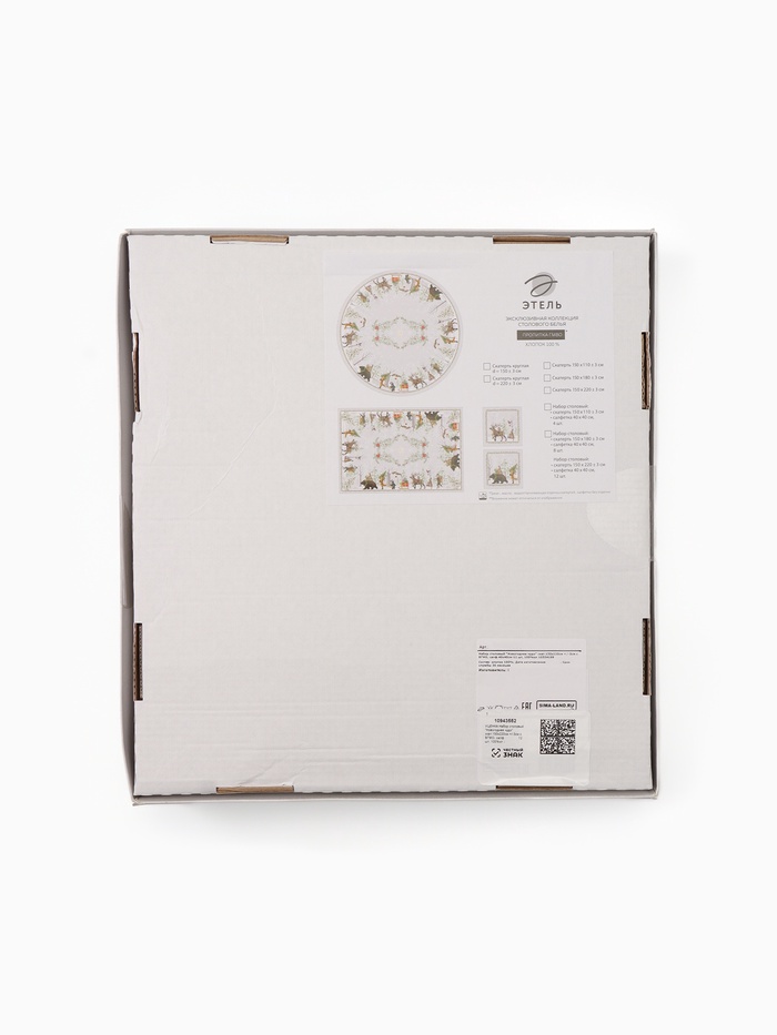 Производитель: Этель Габариты: 27 x 30 x 7 Страна: Россия В боксе: 6 комплект Состав: Хлопок 100% Материалы: хлопок Фасовка: по 1 комплект Сертификат: ЕАС Причина уценки: нарушена упаковка Набор: Да Цвет: Белый Форма: Прямоугольная Ткань: Саржа Плотность, г/м²: 190 Размер, см: 150 х 220, 40 х 40 Длина, см: 220 Ширина, см: 150 В наборе, шт.: 13 Сезон: Зима Тип основы: Тканевая основа Тематика: Новогодняя Вид упаковки: Пакет с крючком Рисунок: Да Символ года: Нет Тематика праздника: Новый год, Рождество Материал: Хлопок Декоративные элементы: Рисунок Рекомендации по уходу: Не отбеливать, Стирка при 30 °С, Глажка при 110 °С, Деликатный режим отжима Состав ткани: Хлопок Составляющие набора: Скатерть, Салфетка Размер салфетки, см: 40 х 40 В подарочной упаковке: Да Влаго-грязе-масло отталкивающая пропитка: Да Фиксированная цена: Да