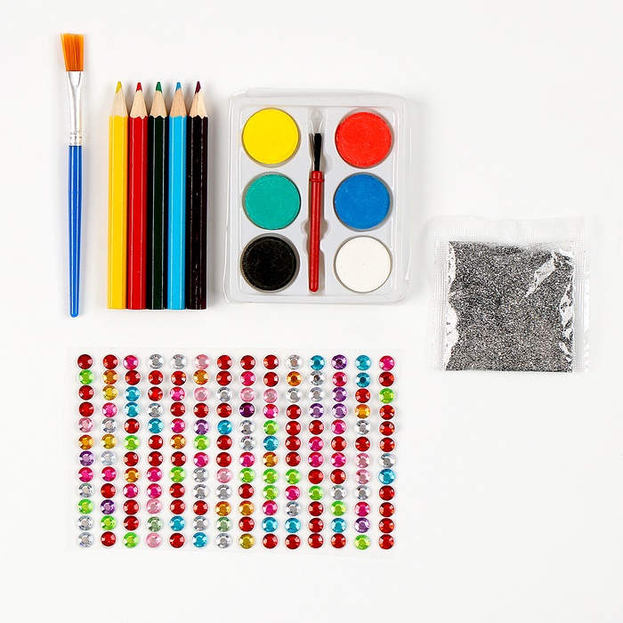 - В наборе всё необходимое для творчества: от цветной бумаги до пластиковых элементов.