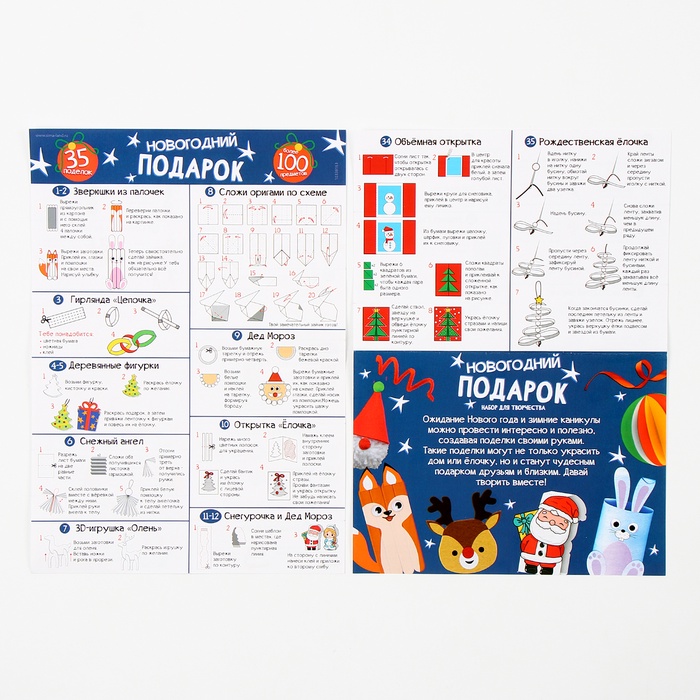 Набор для творчества «Новогодний подарок» от Школы талантов — это 35 идей для создания праздничных поделок своими руками. В набор входят более 100 элементов, включая бумагу и пластиковые детали, которые помогут вам и вашим детям создать уникальные ёлочные игрушки и украшения для дома. Этот набор подходит для детей от 3 лет и является отличным выбором для совместного творчества и подготовки к Новому году.