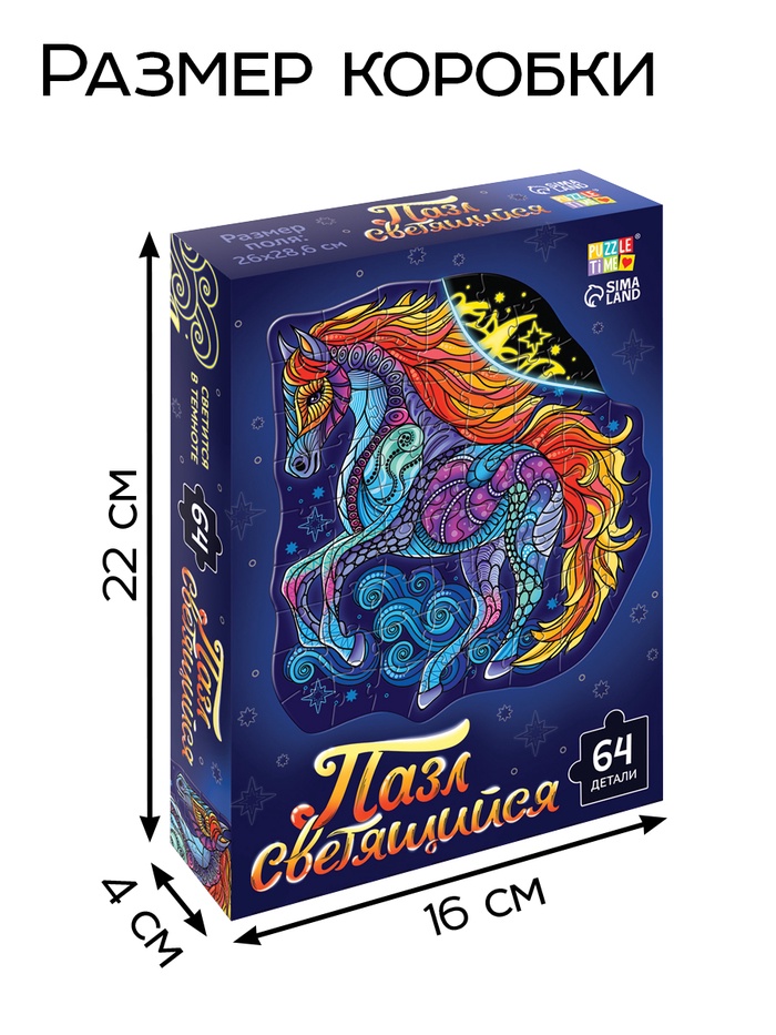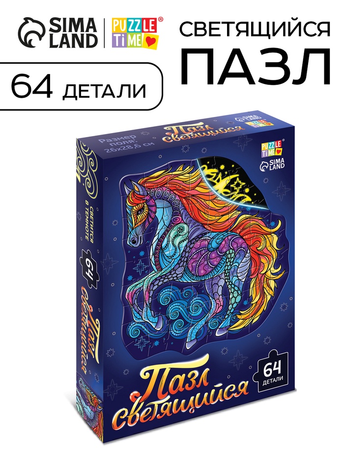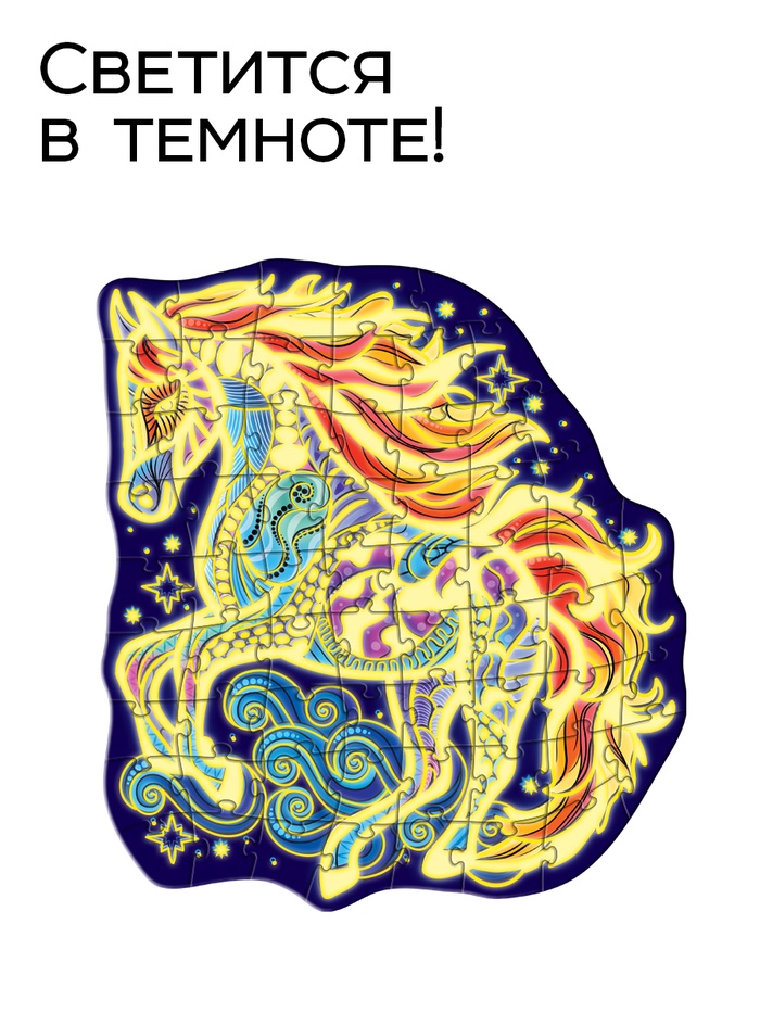 Светящийся пазл «Сверкающая лошадка» — это уникальная головоломка из 64 элементов, которая перенесёт ребёнка в мир зимней магии и животных. Этот классический пазл создан для детей от 3 лет и станет прекрасным подарком или развлечением на новогодних каникулах. Собирая пазл, ребёнок создаёт картину с изящной светящейся лошадкой, которая оживает в темноте, даря атмосферу волшебства и праздника.