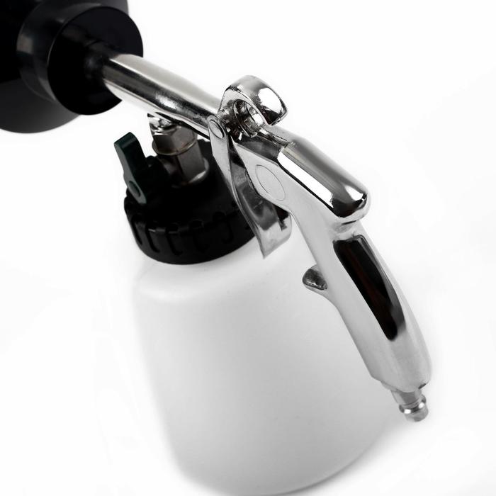 Данный аксессуар подключается к источнику сжатого воздуха, что обеспечивает более равномерное распределение пены. Благодаря ёмкости 1 литр устройство идеально подходит для профессионального и личного использования.