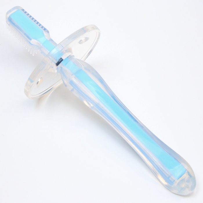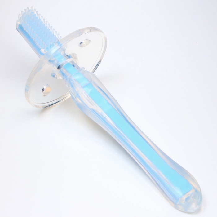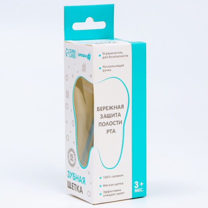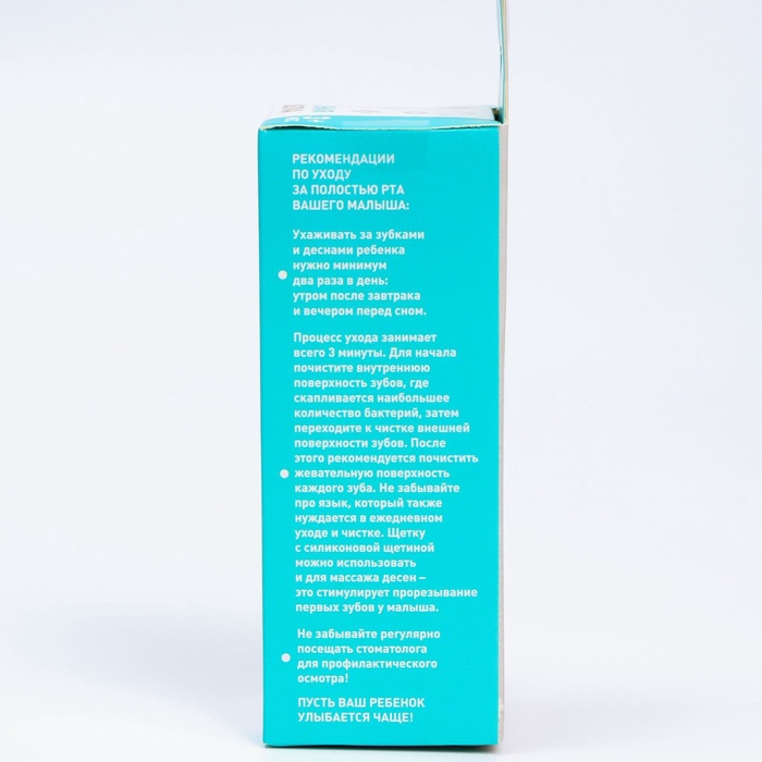 Производитель: Крошка Я Габариты: 15 x 5 x 5 Страна: Китай В боксе: 216 шт Состав: Пластик, силикон Материалы: пластик, силикон Фасовка: по 1 шт Индивидуальная упаковка: коробка Сертификат: ЕАС Причина уценки: нарушена упаковка Набор: Нет Цвет: Голубой Возраст: От 3 месяцев С ограничителем: Да Материал щетины: Силикон Уровень жёсткости: Мягкая Электрические: Нет Возраст: Для детей от 0 до 3 лет, Для детей