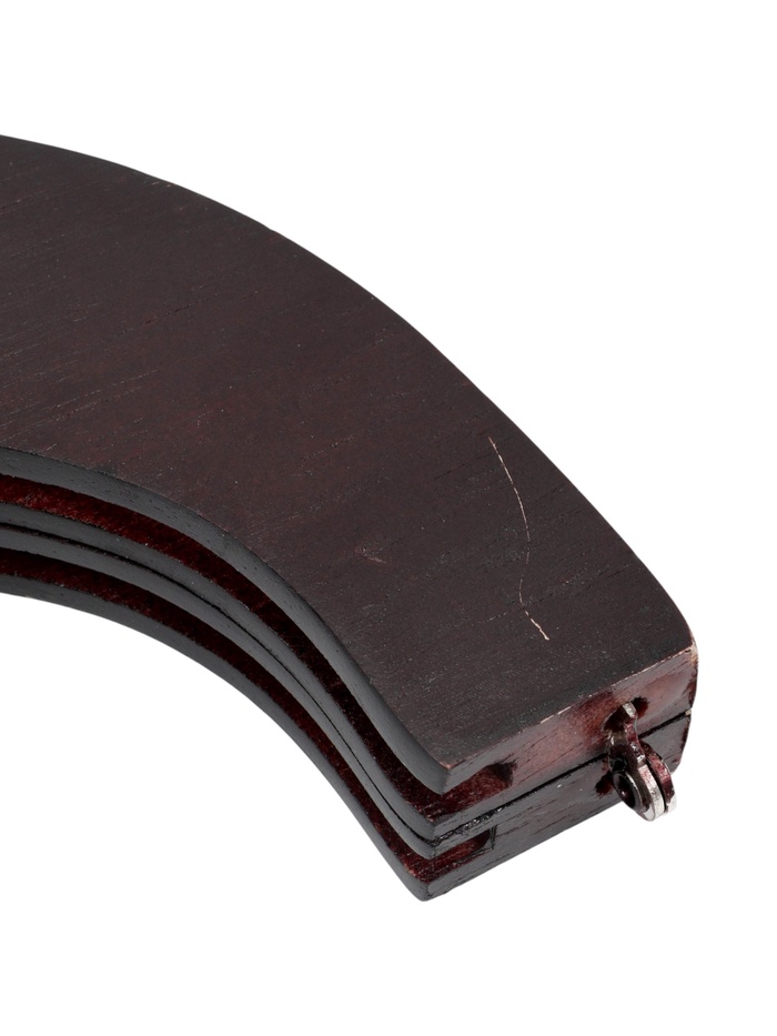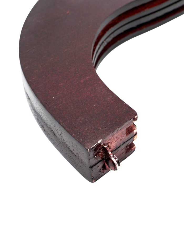 Деревянная ручка-фермуар длиной 27 см выполнена в коричневом цвете и предназначена для украшения и оформления сумок. Благодаря магнитам и креплению, она легко устанавливается и надежно фиксируется, обеспечивая долговечность и удобство использования. Натуральное дерево придает изделию тепло и естественный стиль, подходящий для различных дизайнерских решений.