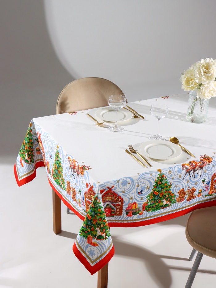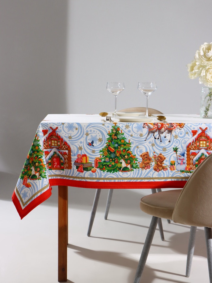 Столовый набор украсит праздничный интерьер. Изделия с эксклюзивным принтом сшиты из хлопкового полотна. Этот материал имеет плотную и упругую структуру, обладает высокой прочностью и на ура справляется с первостепенными задачами: