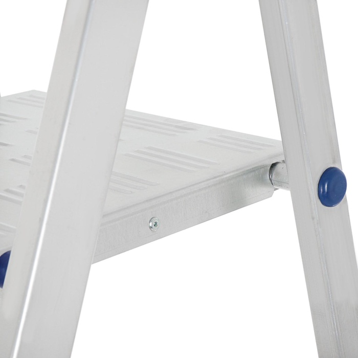 - Проверенная устойчивость: Резиновые накладки на ножках надежно фиксируют стремянку на разных поверхностях, включая плитку и грунт.