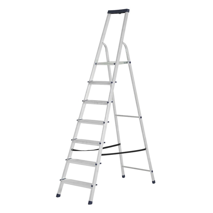- 7 широких ступеней (80 мм): Нога не соскальзывает, стоять удобно даже в обуви с жесткой подошвой. Подъем и спуск безопасны благодаря рифленой поверхности.