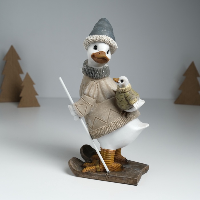 Страна: Китай В боксе: 16 шт Состав: Полистоун Материалы: полистоун Фасовка: по 1 шт Индивидуальная упаковка: Пакет Габариты товара: 9,5 см × 13,5 см × 23,5 см Сертификат: Не подлежит сертификации Причина уценки: трещины; нет нескольких изделий Набор: Нет Цвет: Разноцветный Высота, см: 23,5 Символ года: Нет Тематика праздника: Универсальная тематика, Новый год Адресат: Без адресата Материал: Полистоун Одноцветный: Нет Стиль: Датский Эта скульптура гуся на лыжах с маленьким гусёнком приносит в дом дух зимнего уюта и датской простоты. Она становится центром новогоднего декора или трогательным подарком, напоминающим о семейной близости и радости простых моментов. Особенности