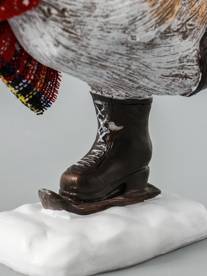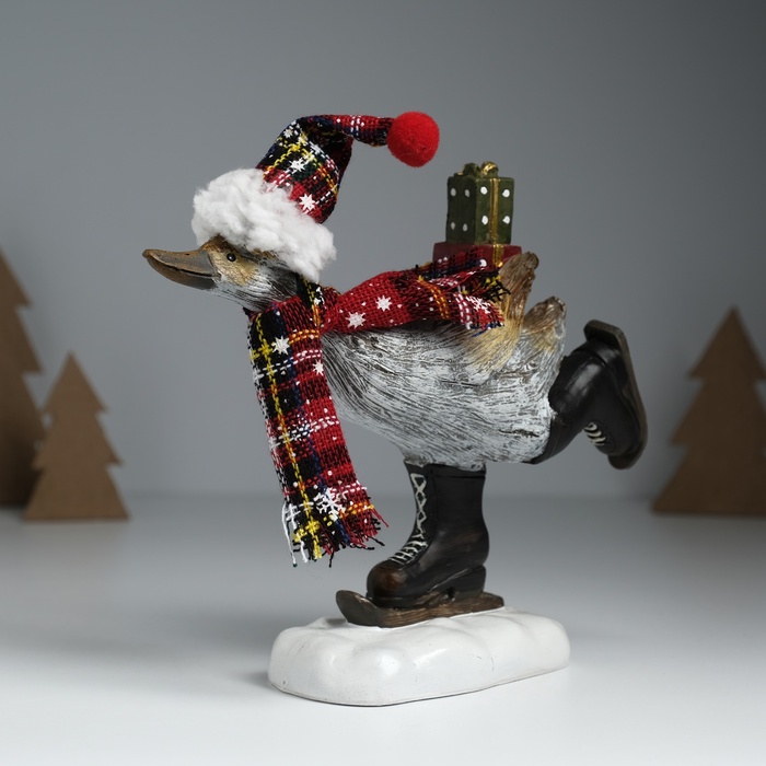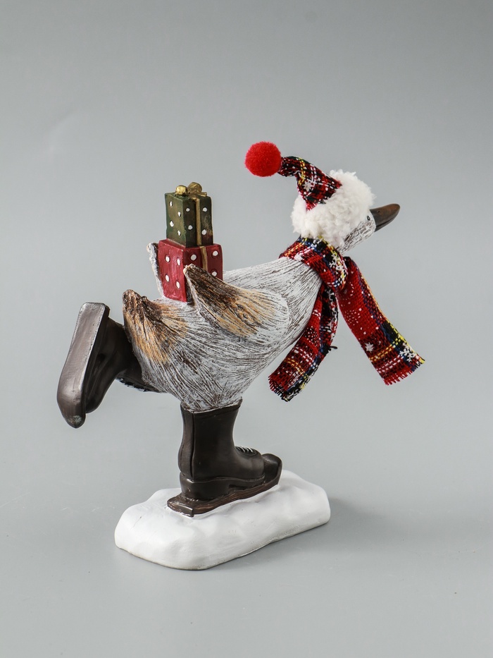 Этот новогодний гусь на лыжах станет душой вашего праздника. Он уже готов к зимним приключениям: в тёплом шарфе и колпаке, с подарками за спиной. Фигурка создаёт особое настроение уюта и веселья, напоминая о долгих вечерах с горячим какао и сказочных историях.