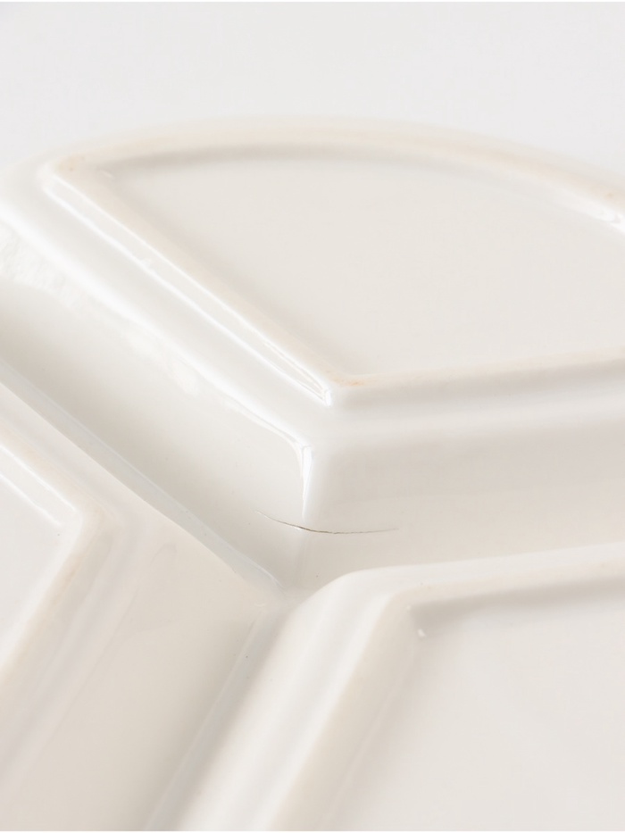 Менажница сможет гармонично дополнить сервировку стола. В нее можно положить различные закуски: орехи, фрукты, овощи, снеки, сыр и многое другое. Также менажницу можно использовать в качестве обеденной тарелки, положив в каждую ячейку разные блюда.