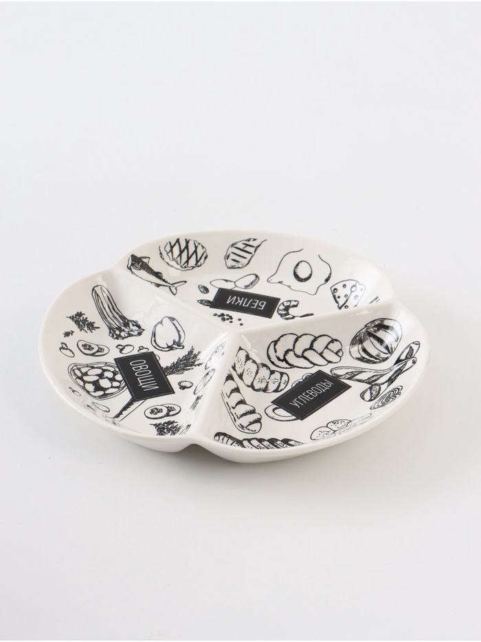 Такая менажница удобна в использовании, ее можно мыть в посудомоечной машине и использовать в микроволновой печи.