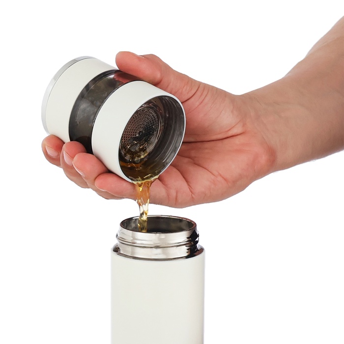 Минималистичный и функциональный аксессуар станет незаменимым помощником для всех, кто любит наслаждаться ароматным и горячим напитком в любое время и в любом месте. Оснащён термометром на крышке, который позволяет контролировать температуру напитка в реальном времени, обеспечивая максимальное удобство использования.