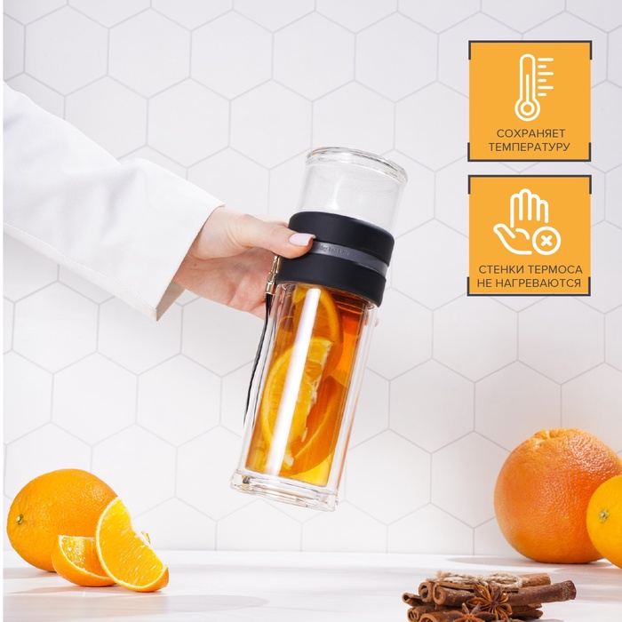 - Стеклянный термос-заварник прекрасно сохраняет температуру напитка, благодаря чему вы сможете наслаждаться горячим чаем или кофе в любое время.