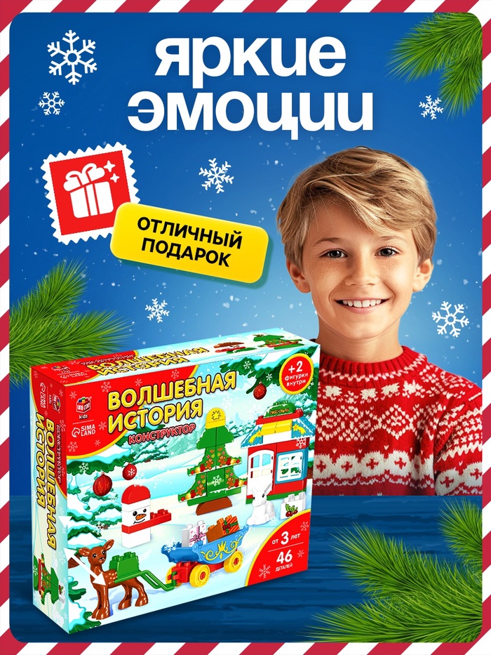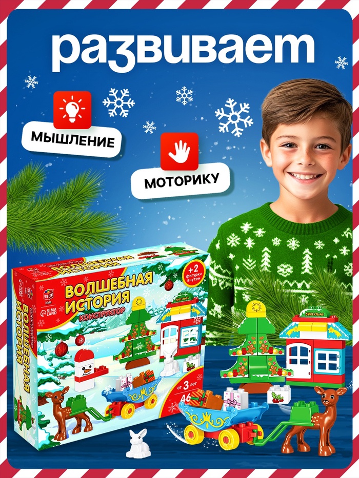 Маленькому любителю волшебства непременно понравится новогодний конструктор. С ним ребёнок не только воспроизведёт праздничный сюжет, но и сможет придумать свои истории.
