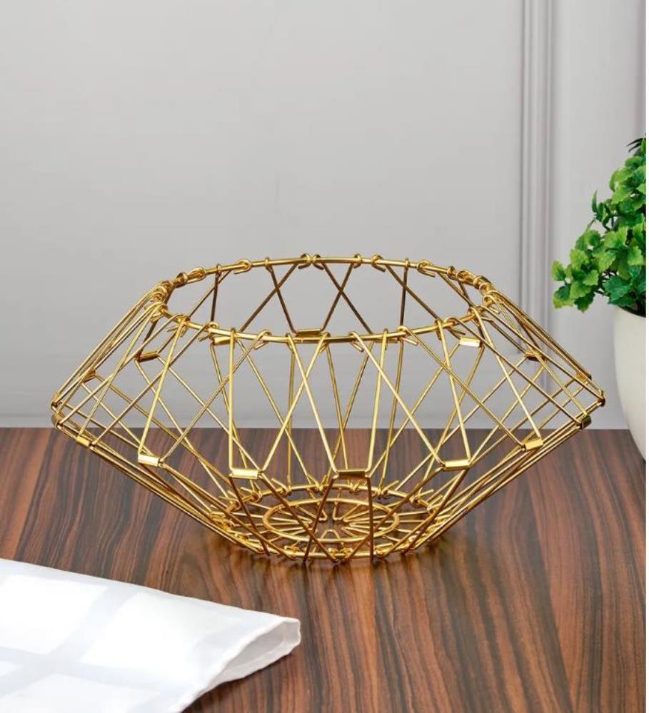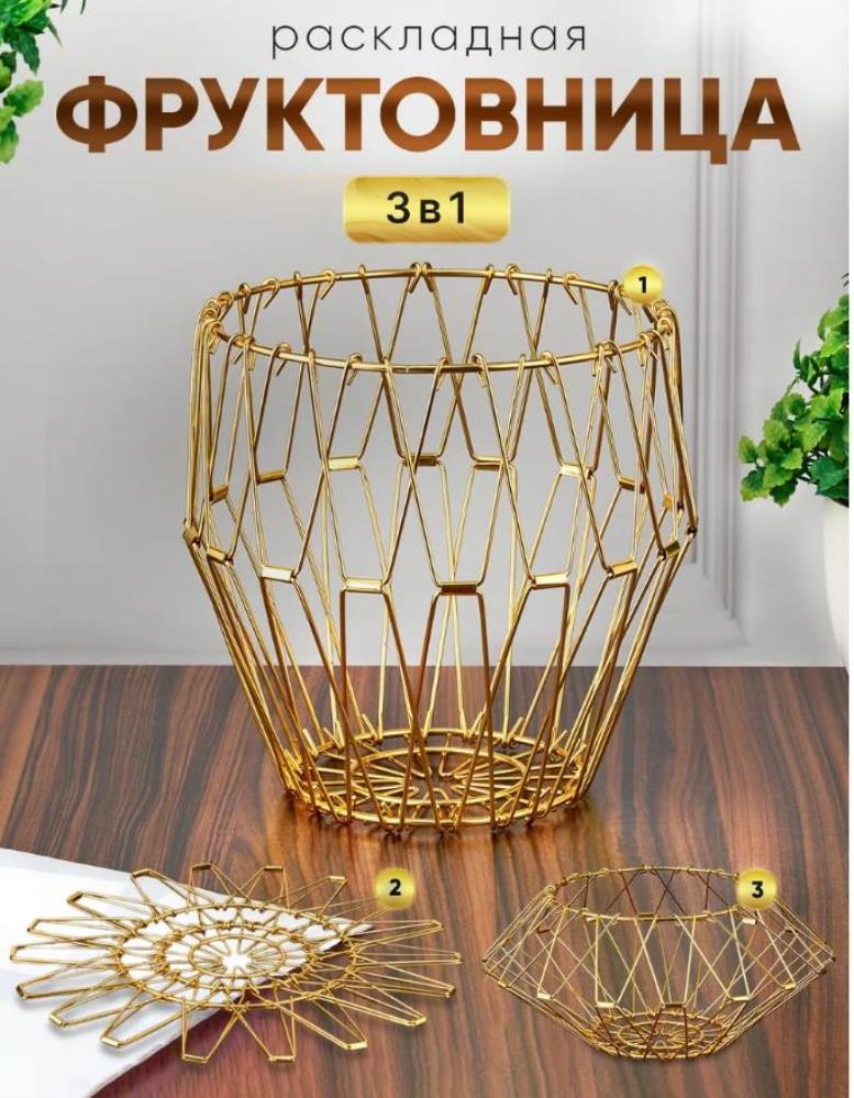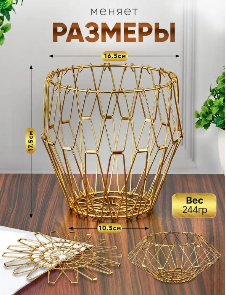 Вес уп.(гр) ~: 285 Удивительная Фруктовница металлическая складная ваза для фруктов золото Удивительная и стильная ваза фруктовница, из которой можно сделать любую форму, под ваш стиль.