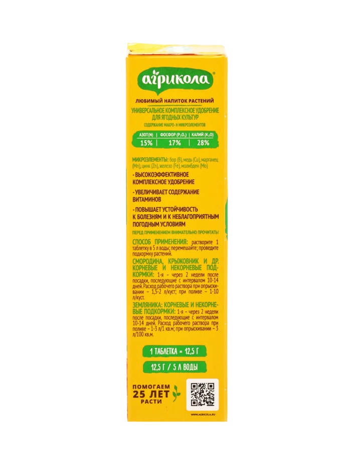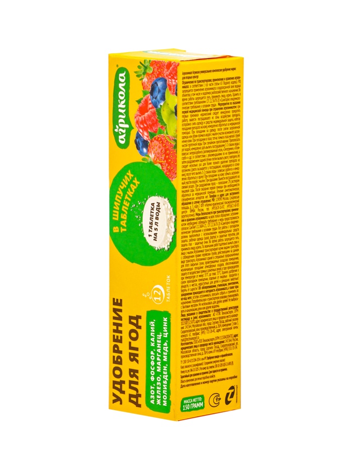 Габариты: 3,5 x 3,5 x 13 Страна: Россия В боксе: 20 шт Состав: См. на упаковке Материалы: см. на упаковке Фасовка: по 1 шт Индивидуальная упаковка: Цветная картонная коробка Сертификат: РСТ Область применения: Для фруктово-ягодных деревьев и кустарников Происхождение: Минеральные (неорганические) Препаративная форма: Таблетки Вид: Удобрения Состав (действующее вещество): Марганец, Медь, Цинк, Молибден, Бор, Железо Периоды применения: Лето, Весна Комплексные удобрения: Да Класс опасности: 3 класс (умеренно опасные) Группы элементов: Макроудобрения Эффект: Увеличение урожая Вес/Объём: 150 г Инструкции