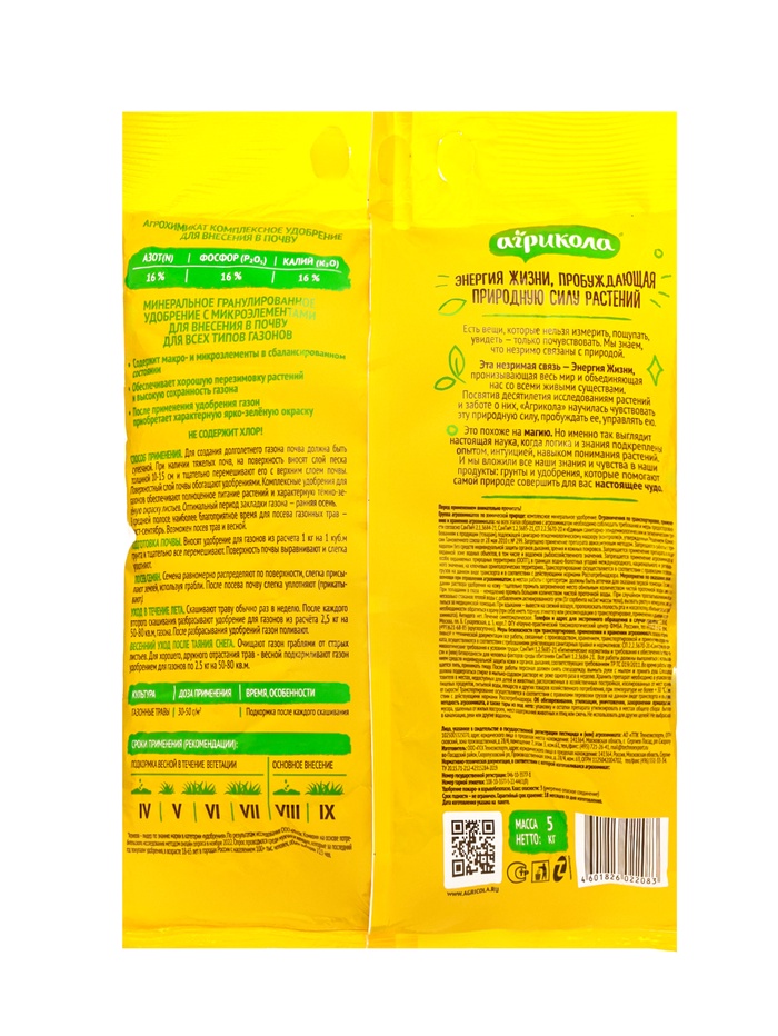 Габариты: 41 x 31,5 x 5 Доставка: Платная Страна: Россия В боксе: 5 шт Состав: См. на упаковке Материалы: см. на упаковке Фасовка: по 1 шт Индивидуальная упаковка: Без упаковки Сертификат: СТР Препаративная форма: Гранулы Комплексные удобрения: Да Эффект: Изменение цвета Инструкции Способ применения: для создания долголетнего газона почва должна быть супесчаной. При наличии тяжелых почв, на поверхность вносят слой песка толщиной 10-15 см и тщательно перемешивают его с верхним слоем почвы. Поверхностный слой почвы обогащают удобрениями. Комплексные удобрения для газонов обеспечивают полноценное питание растений и характерную тёмно-зелёную окраску листьев. Оптимальный период закладки газона — ранняя осень.