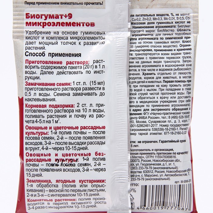 Комплексное ограноминеральное удобрение, содержащее весь необходимый набор микроэлементов для подкормки овощных, ягодных, цветочных культур и комнатных растений. Увеличивает плодообразование, повышает продуктивность, увеличивает сроки хранения, стимулирует жизнедеятельность микрофлоры в почве.