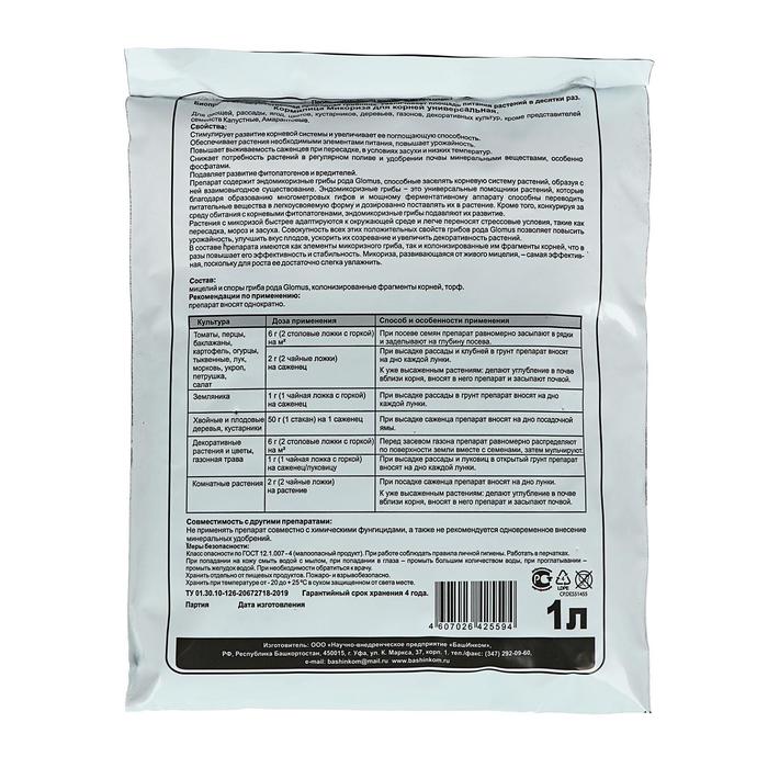 Габариты: 20 x 15 x 2 Доставка: Платная Страна: Россия В боксе: 18 шт Состав: См. на упаковке Материалы: см. на упаковке Фасовка: по 1 шт Индивидуальная упаковка: Без упаковки Сертификат: Не подлежит сертификации Вид средства: Удобрение Область применения: Для клубники, Для лиственных деревьев, Для лиственных кустарников, Для хвойных деревьев, Для садовых цветов, Для хвойных кустарников, Для овощей Происхождение: Органические (природное) Препаративная форма: Гранулы Вид: Удобрения Периоды применения: Круглогодичные Комплексные удобрения: Нет Класс опасности: 3 класс (умеренно опасные) Группы элементов: Макроудобрения Эффект: Увеличение урожая Вес/Объём: 1 л Кормилица Микориза обеспечит Ваши растения полезными и верными друзьями на всю жизнь. Она содержит дружественные растениям грибы, которые формируют с корнями симбиоз. Благодаря этому всасывающая способность корневой системы возрастает на порядок, и растения значительно легче получают воду и питательные вещества. Полезные грибы своим присутствием не дают развиваться болезнетворным микробам – это настоящий щит от болезней и стрессов. Преимущества: