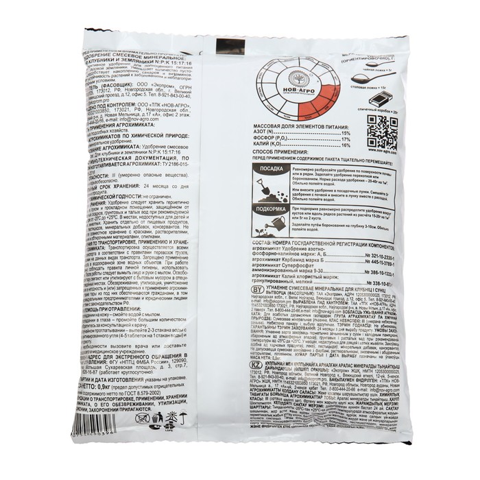 Габариты: 20 x 16 x 3 Доставка: Платная Страна: Россия В боксе: 30 шт Состав: См. на упаковке Материалы: см. на упаковке Фасовка: по 1 шт Индивидуальная упаковка: Пакет Габариты товара: 16 см × 2 см × 19 см Сертификат: РСТ Происхождение: Минеральные (неорганические) Препаративная форма: Сухая смесь Вид: Удобрения Периоды применения: Осень, Лето, Весна Комплексные удобрения: Нет Класс опасности: 3 класс (умеренно опасные) Группы элементов: Макроудобрения Эффект: Увеличение урожая Вес/Объём: 900 мл Способствует улучшению питания растений, увеличивает образование завязей, а также улучшает вкусовые качества ягод. Повышает сопротивляемость растений к болезням и к вредителям. Усиливает стойкость растений к резким переменам климатических условий. Корневая подкормка растений в течение периода вегетации 3-4 раза с интервалом 7-10 дней. Приготовление рабочего раствора 30-50 г на 1л воды.Расход рабочего раствора - 2-4 л/м2. Комментарии к товару