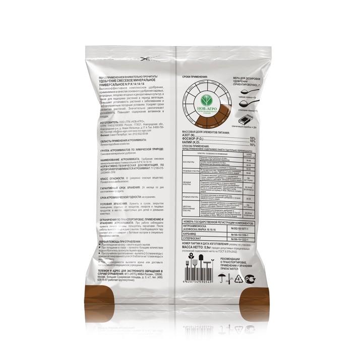 Габариты: 20 x 16 x 3 Доставка: Платная Страна: Россия В боксе: 30 шт Состав: См. на упаковке Материалы: см. на упаковке Фасовка: по 1 шт Индивидуальная упаковка: Пакет Габариты товара: 16 см × 2 см × 19 см Сертификат: СТР Область применения: Универсальные Происхождение: Минеральные (неорганические) Препаративная форма: Сухая смесь Вид: Удобрения Периоды применения: Круглогодичные Комплексные удобрения: Нет Класс опасности: 3 класс (умеренно опасные) Группы элементов: Макроудобрения Эффект: Увеличение урожая Вес/Объём: 900 мл Удобрение "НОВ-АГРО" минеральное, универсальное - подходит для выращивания садовых, огородных, плодово-ягодных и декоративных культур, а также для подкормки растений в период вегетации. Все культуры: внесение весной под перекопку (вспашку, рыхление) почвы - 100-150 г/м2. Овощные культуры, картофель, земляника, цветочно-декоративные культуры: внесение при посеве (посадке) - 100 г/м2 или 15-30г под растение. Комментарии к товару