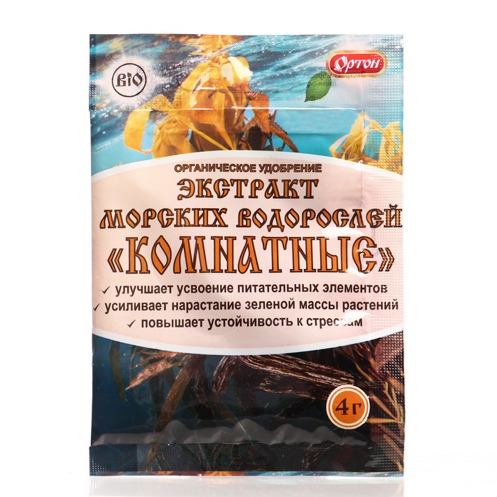 Габариты: 12,5 x 9 x 0,2 Страна: Россия В боксе: 100 шт Состав: См. на упаковке Материалы: см. на упаковке Фасовка: по 1 шт Индивидуальная упаковка: Без упаковки Сертификат: Не подлежит сертификации Область применения: Для цветущих комнатных растений Происхождение: Органические (природное) Препаративная форма: Порошок, Сухая смесь Вид: Удобрения Периоды применения: Круглогодичные Комплексные удобрения: Нет Класс опасности: 3 класс (умеренно опасные) Группы элементов: Макроудобрения Эффект: Увеличение урожая Удобрение Экстракт морских водорослей -это ферментированный экстракт бурых водорослей. В составе использованы виды Ascophillum и Laminaria. Используется для подкормки горшечных растений на любой стадии в период активного роста. Для комнатных растений, декоративно-лиственных, цветущих, орхидей, кактусов и других. Действие: - ускоряет образование корней; - стимулирует рост и развитие; - ускоряет наращивание зелёной массы растений; - способствует зацветанию, - увеличивает количество цветков; - повышает устойчивость растений к недостатку света и перепадам температуры. Содержимое пакета (4 г) растворить в 2 л воды, тщательно перемешать. Опрыскивать цветочные растения по листьям в период активного роста с интервалом 10-15 дней или поливать под корень до увлажнения земляного кома. Расход рабочей жидкости при опрыскивании 0,05-0,1 л на растение. Комментарии к товару