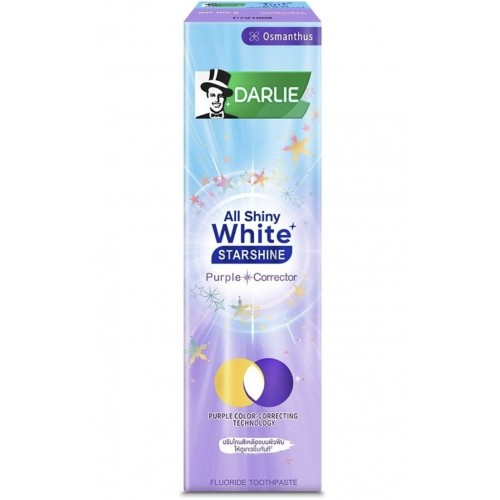 Зубная паста Darlie All Shiny White Starshine Purple Corrector 100 гр — фиолетовый корректор, оптическое отбеливание и защита эмали. Зубная паста Darlie All Shiny White Starshine Purple Corrector — это современное решение для тех, кто хочет добиться быстрого визуального осветления зубов без агрессивного отбеливания. Фиолетовый корректор цвета нейтрализует желтые оттенки эмали по принципу цветового баланса, создавая эффект более белой и яркой улыбки уже после первых чисток. Активная формула с фтором укрепляет эмаль и снижает риск развития кариеса, а растительные компоненты — ромашка и алоэ — заботятся о здоровье десен, уменьшая воспаление и повышая комфорт при чистке. Паста обладает приятным ароматом, хорошо пенится и бережно удаляет повседневные загрязнения и налёт. Идеальна для ежедневного использования, людей с чувствительной эмалью и тех, кто хочет быстро освежить оттенок зубов без профессиональных процедур.
