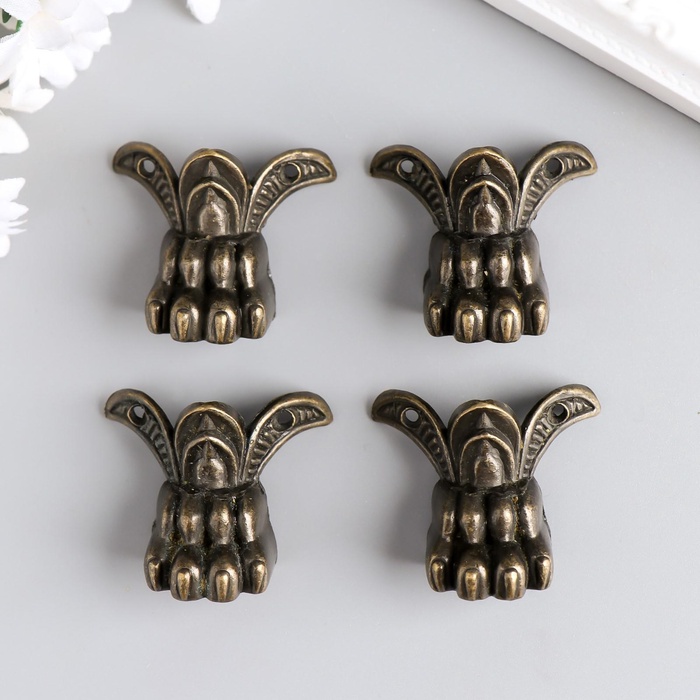 Габариты: 11 x 12 x 3,5 Страна: Китай В боксе: 69 набор В наборе: 4 набор Состав: Металл Материалы: металл Фасовка: по 1 набор Индивидуальная упаковка: Пакет Сертификат: Не подлежит сертификации Цвет: Бронзовый Вид: Для ключниц, Для шкатулок Тип: Уголки Эти бронзовые ножки-лапы придают шкатулкам и ключницам характер и устойчивость. Каждый уголок — это законченная деталь, превращающая обычную вещь в выразительный акцент вашего интерьера. Особенности